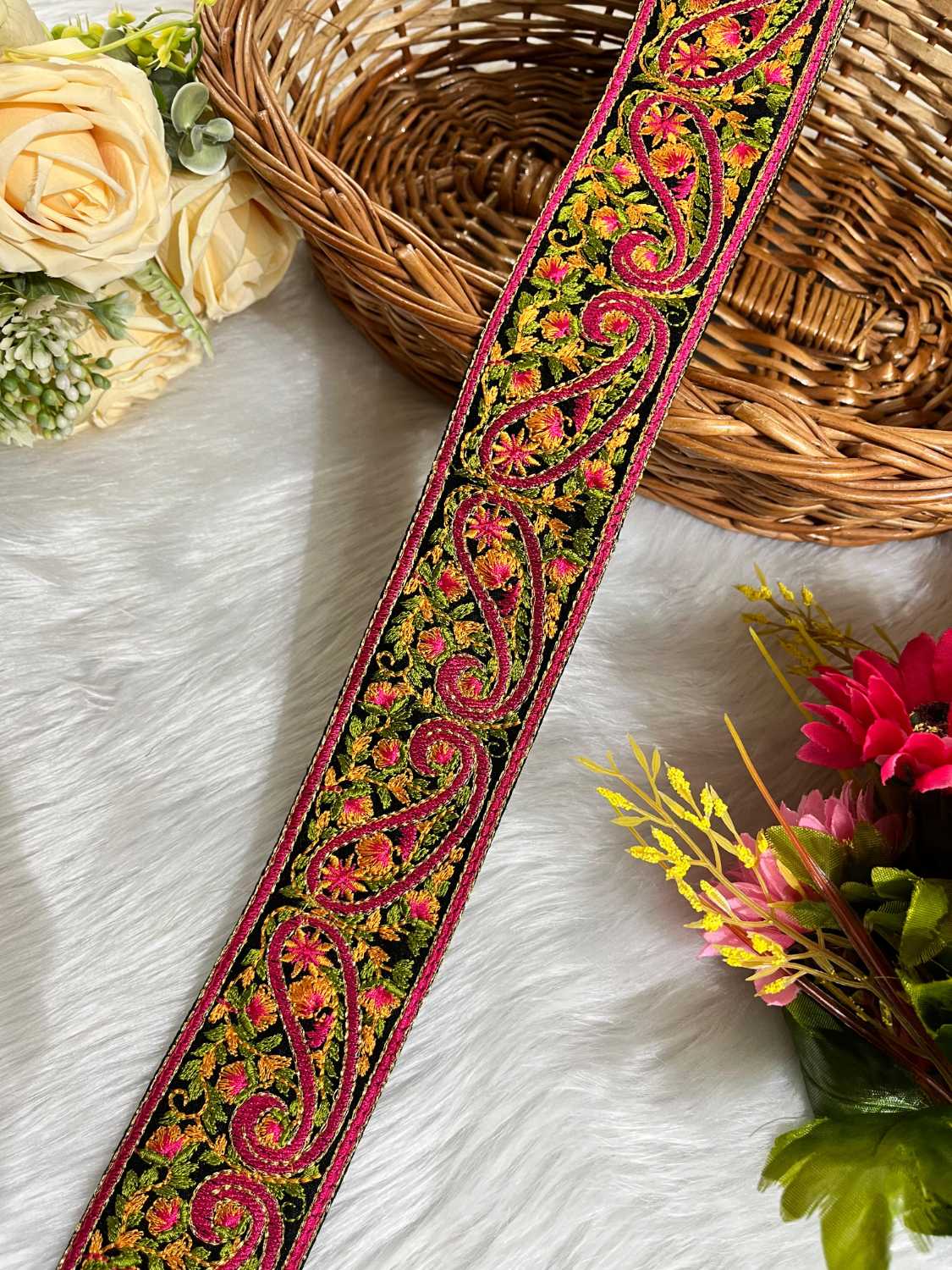 - Length: 9 meters – Elegant Kashmiri thread embroidery lace for sarees, dupattas, and lehengas.