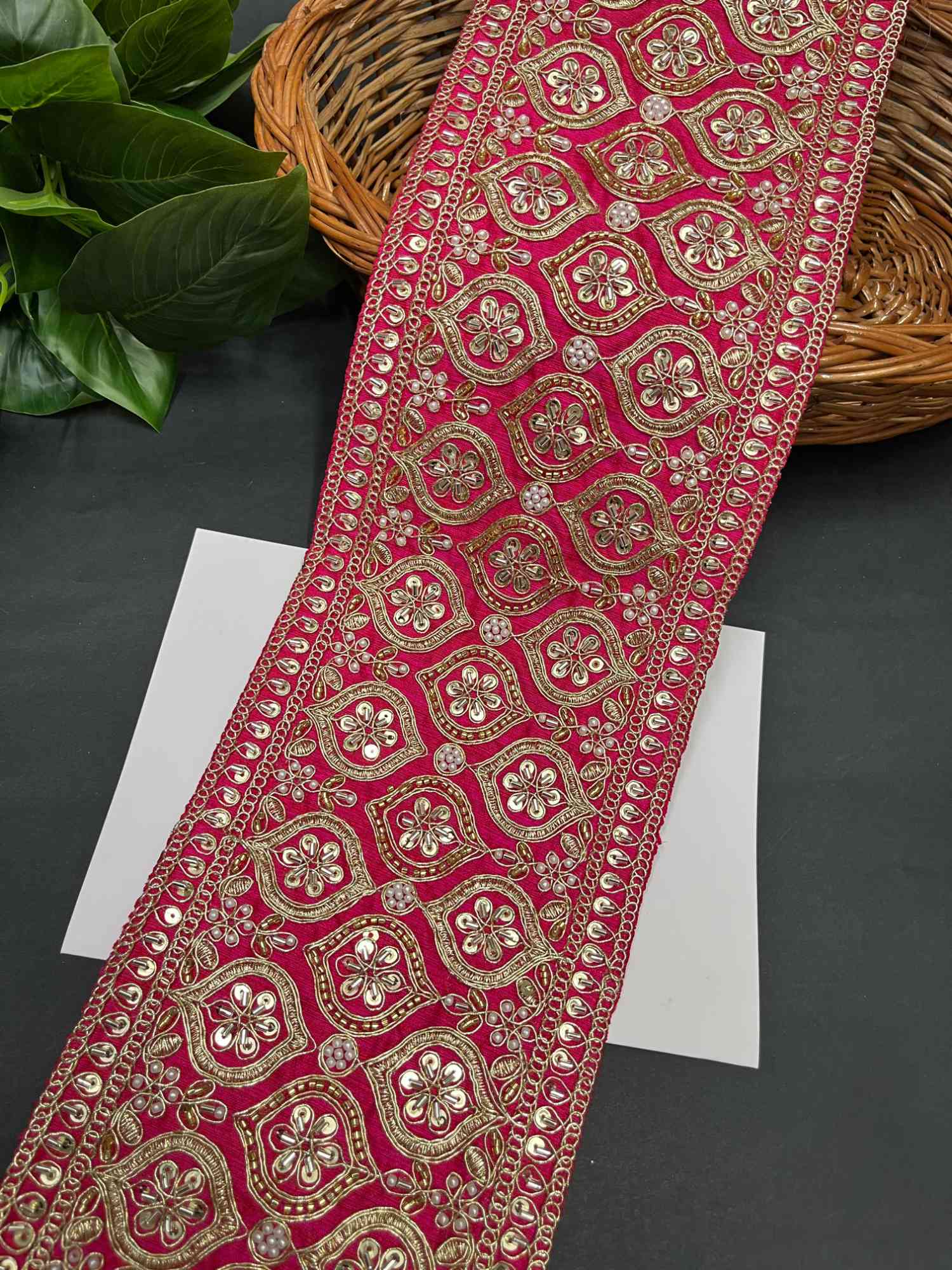 Katdana & Bead Work Embroidered Bridal Lehenga Lace Trim – 9 Meters, 5-Inch Heavy Border for Sarees & Wedding Outfits | Tomato