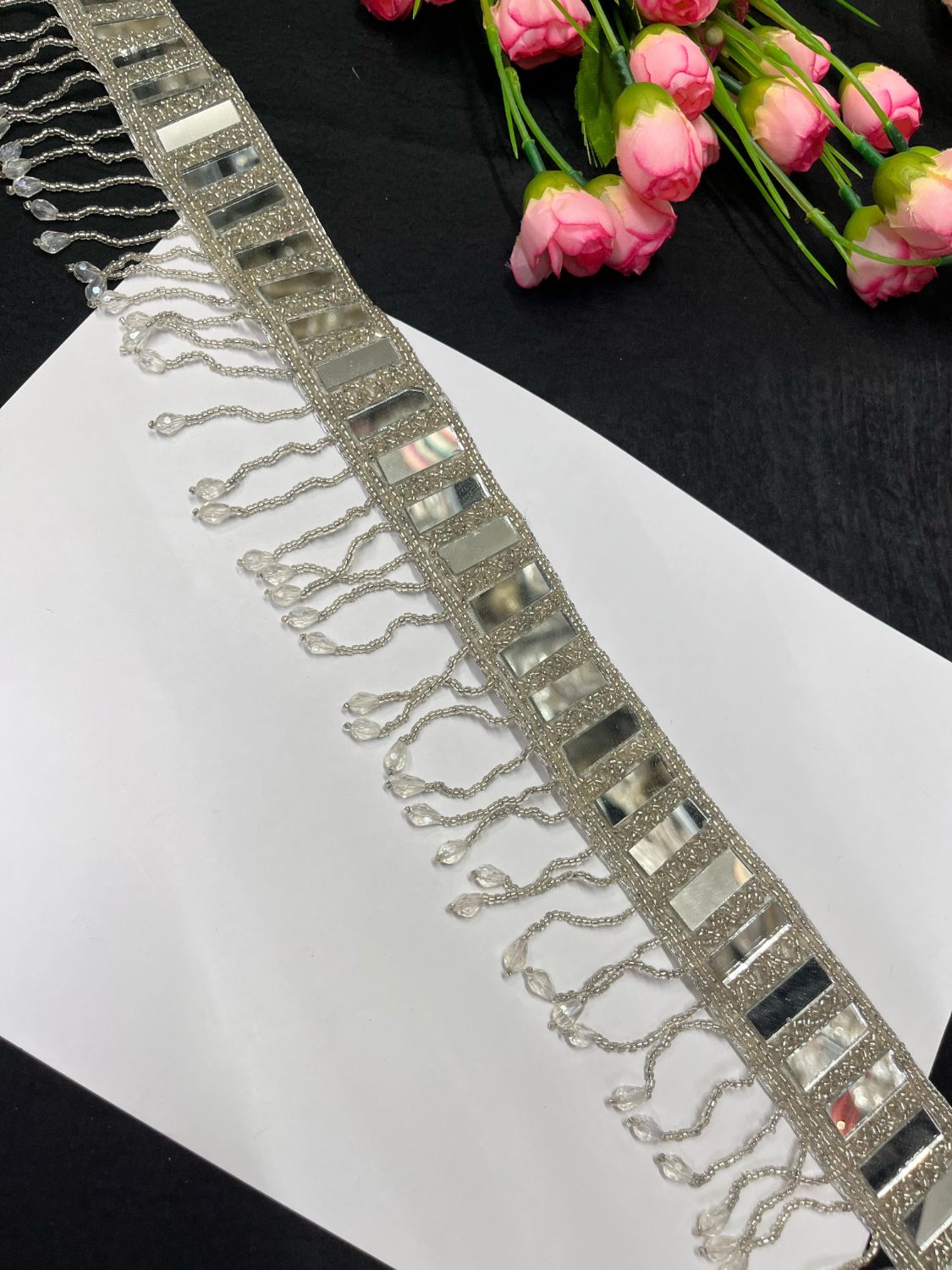 Upgrade your festive ensemble with this glamorous Mirror Beaded Handcrafted Waist Belt. Adorned with mini mirror work, intricate beads, and elegant hangings, this waist belt adds a sparkling ethnic touch to any outfit.