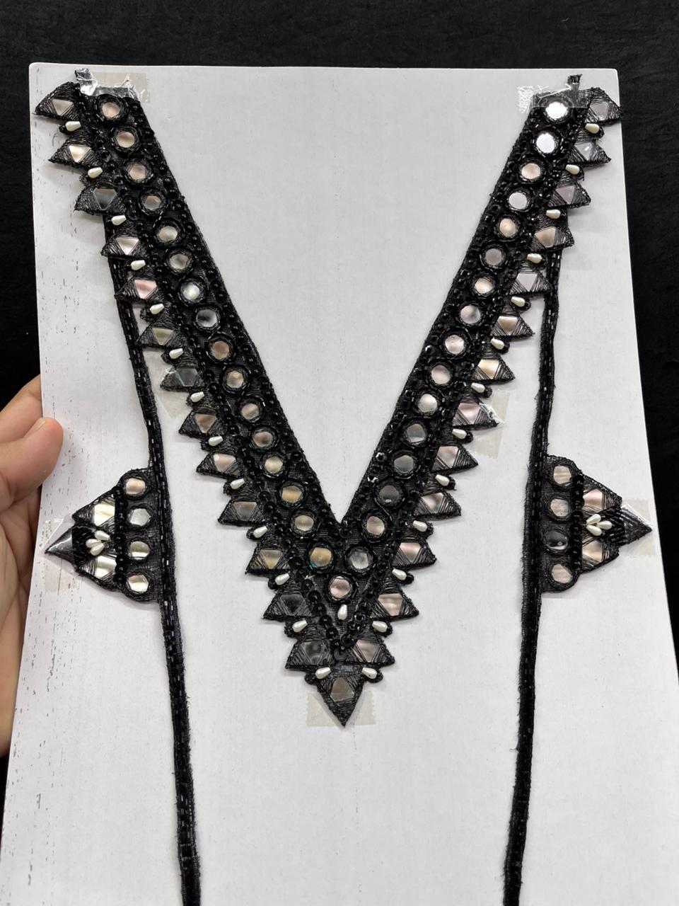 Mirror Work Neck Patch for Kurti, Suits & Bridal Dresses – Premium Designer Ethnic Neck Patch for Festive Wear | Black