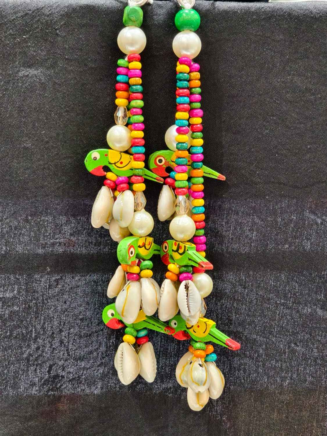 Multi Colour Parrot with Shell Tassels – Decorative Accessory for Blouses, Sarees, and Dupattas – Sold as a Pair (16 cm)