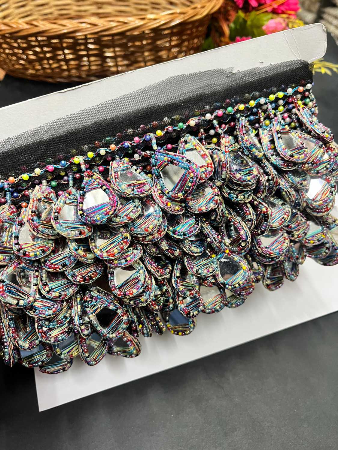 Multi Shaded Real Mirror Work Hanging Lace on Net Fabric – Decorative Latkan Lace for Sarees, Dupattas, and Dresses (9 mtr, 2.5 inch)