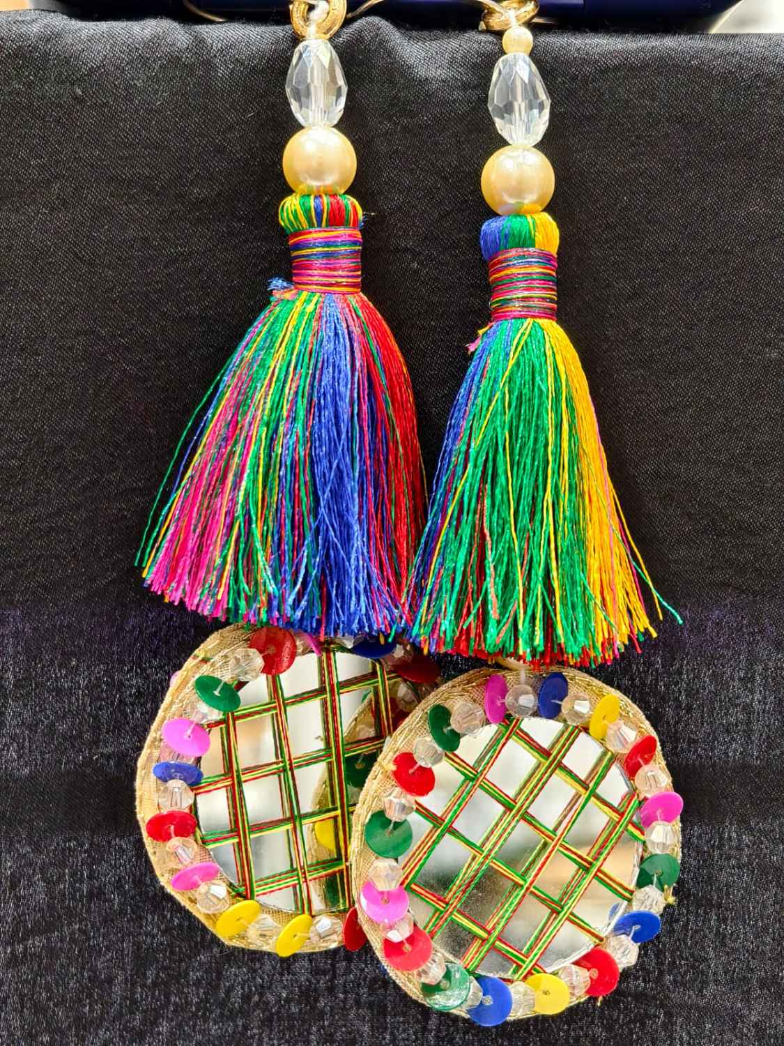 - Beautifully handcrafted tassels made with vibrant multi-colored threads for a rich ethnic appeal