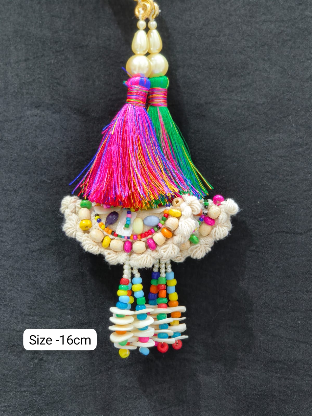 Multi Wooden Beads Scalloped Tassels – Decorative Accessory for Blouses, Sarees, and Dupattas – Sold as a Pair (16 cm)