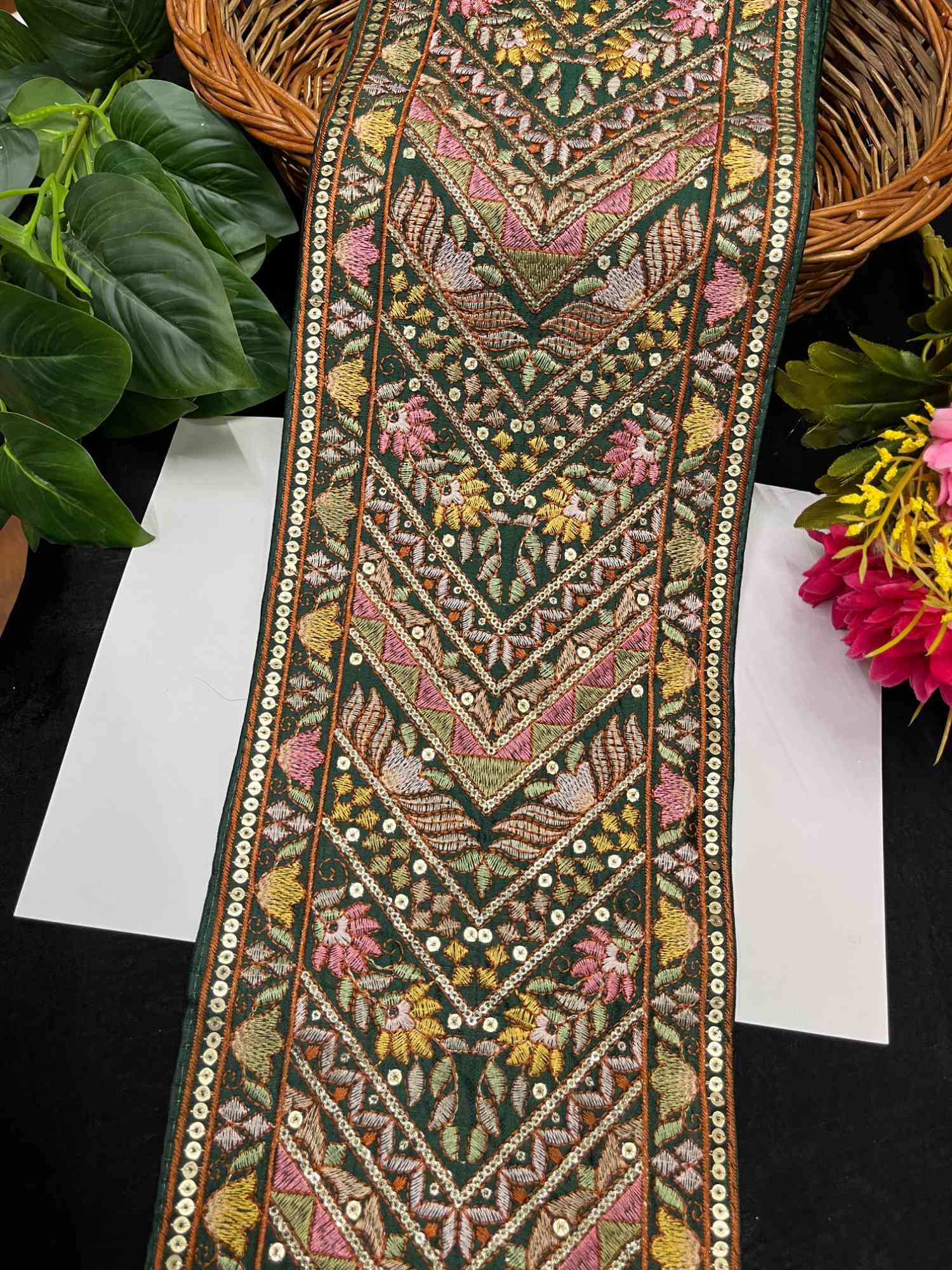 Multicolored Embroidered Lehenga Lace – 9 Meters, 7-Inch Heavy Designer Saree Laces Border for Lehengas, Sarees & Dupattas | Bottle Green