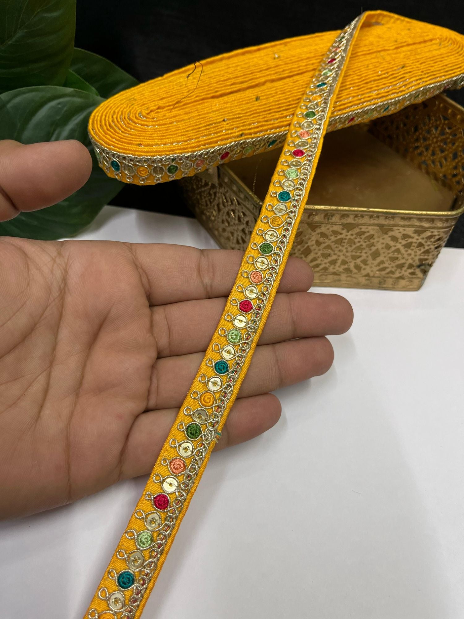 Multicolored Sabyasachi Inspired Embroidered Lace – 9 Meters, 0.5-Inch Designer Trim for Sarees, Lehengas & Dupattas | Yellow