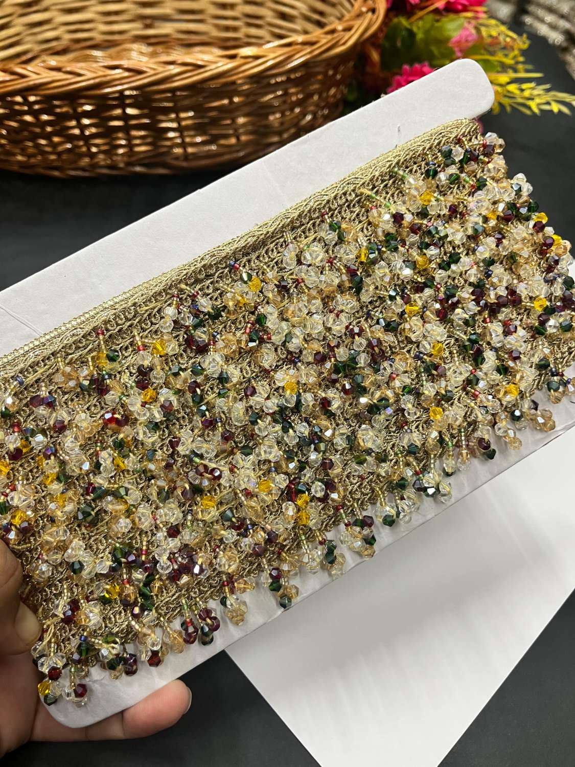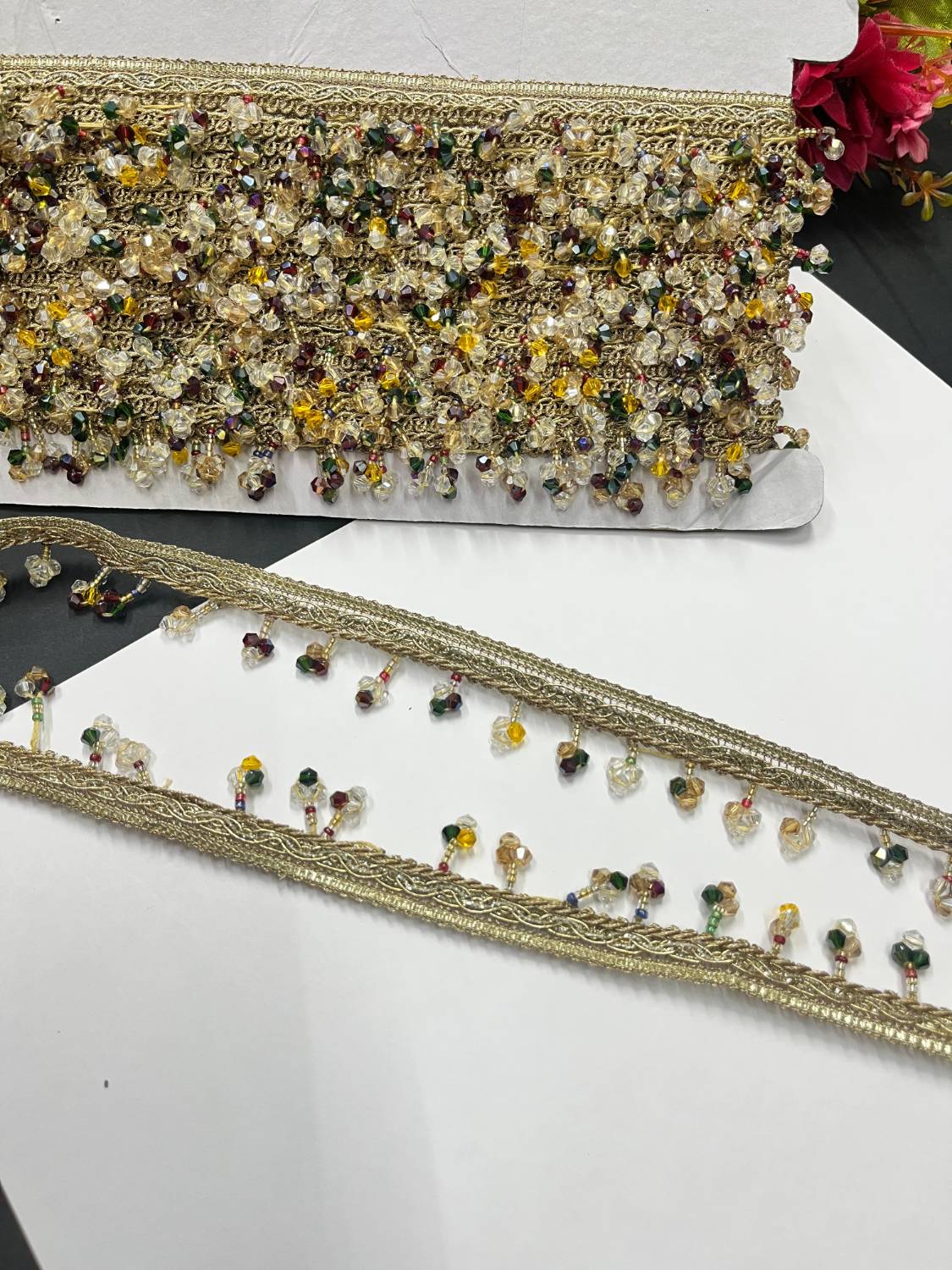 Multicoloured Crystal Hanging Lace – Decorative Latkan Lace for Sarees, Dupattas, and Dresses (9 mtr, 1 inch)