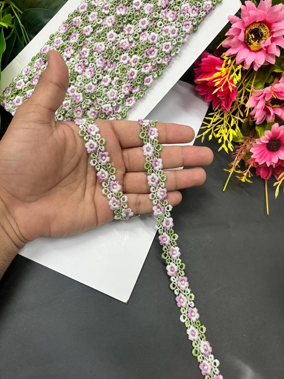 Multicoloured Guipure Lace & Trims – Imported Decorative Lace for Sarees, Dupattas, and Dresses (9 mtr, 0.5 inch) | Multi 4