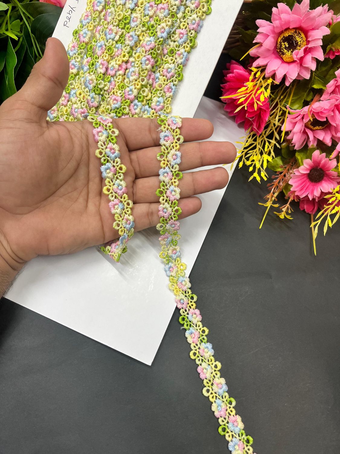 Multicoloured Guipure Lace & Trims – Imported Decorative Lace for Sarees, Dupattas, and Dresses (9 mtr, 0.5 inch) | Multi 5