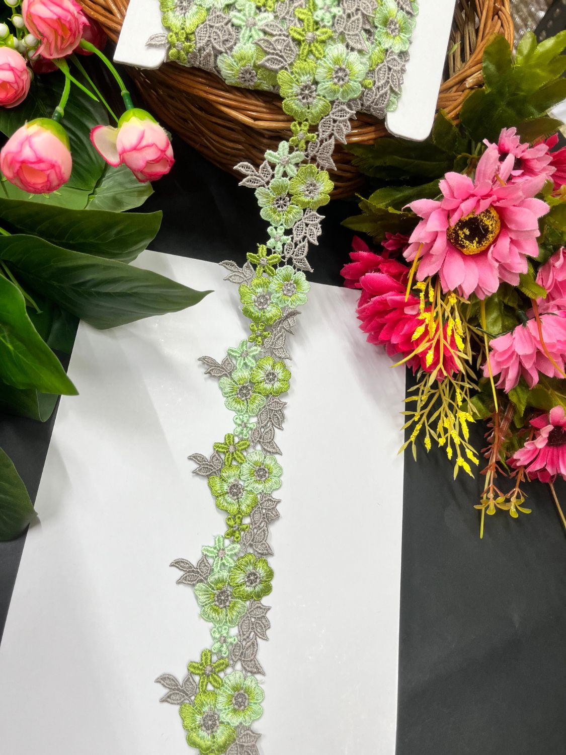 Multicoloured Imported Cotton Lace Collection – Decorative Lace for Sarees, Dupattas, and Dresses (9 mtr, 3 inch) | Green