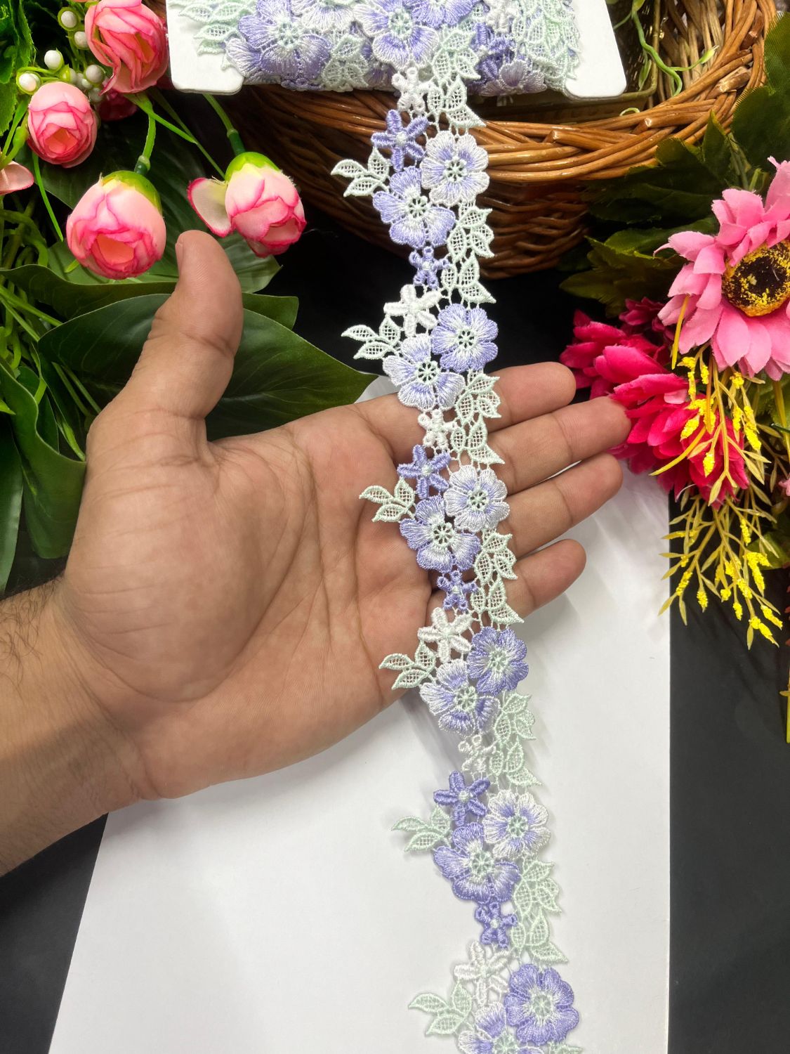 Multicoloured Imported Cotton Lace Collection – Decorative Lace for Sarees, Dupattas, and Dresses (9 mtr, 3 inch) | Purple
