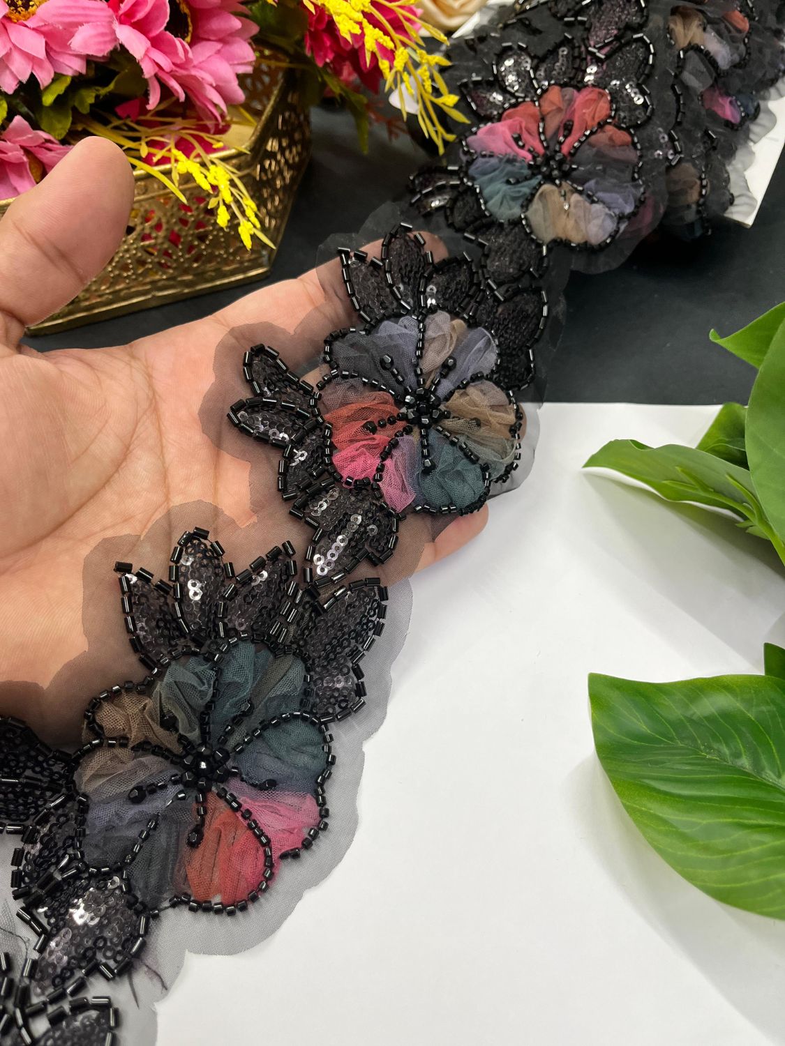 - Length: 9 meters – Eye-catching multicoloured imported lace on premium organza fabric.