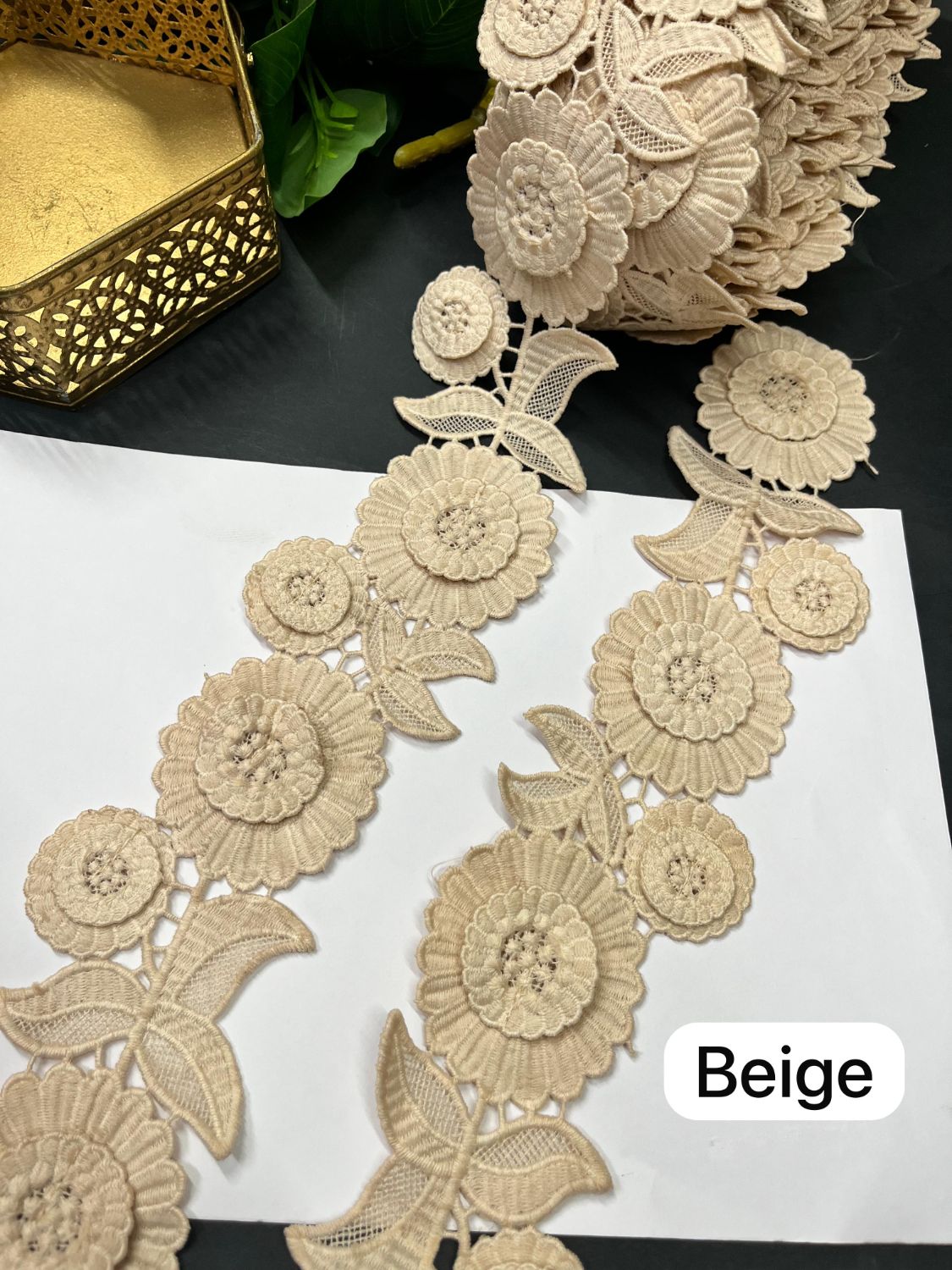 New Imported Western Lace for Sarees & Dresses – Premium 3 Inch Decorative Lace Border (9 Meter) | Beige