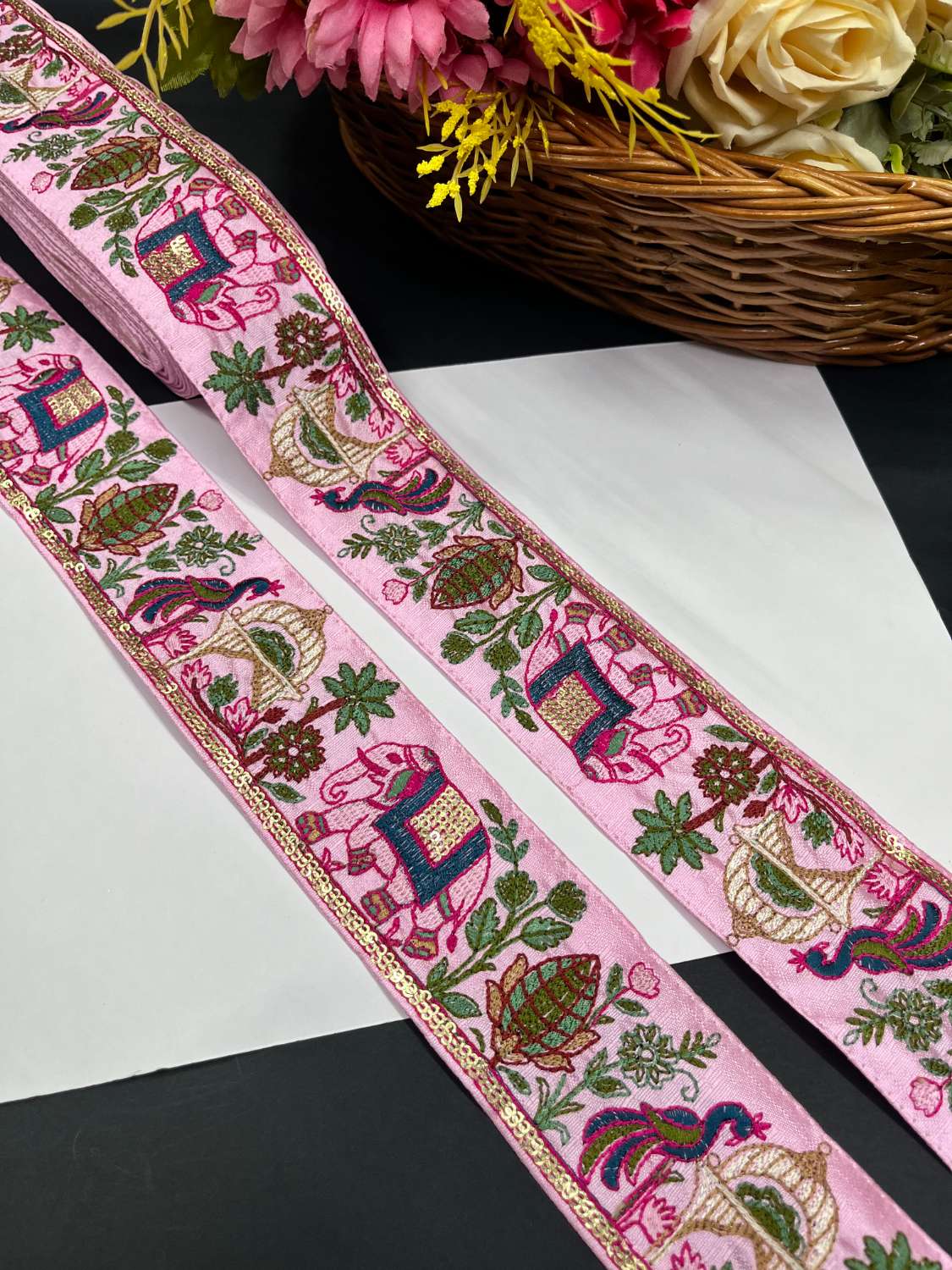 Peacock & Elephant Face Embroidery Saree Lace for Boutique, Sarees, Duppatas – 9 Meter | Baby Pink