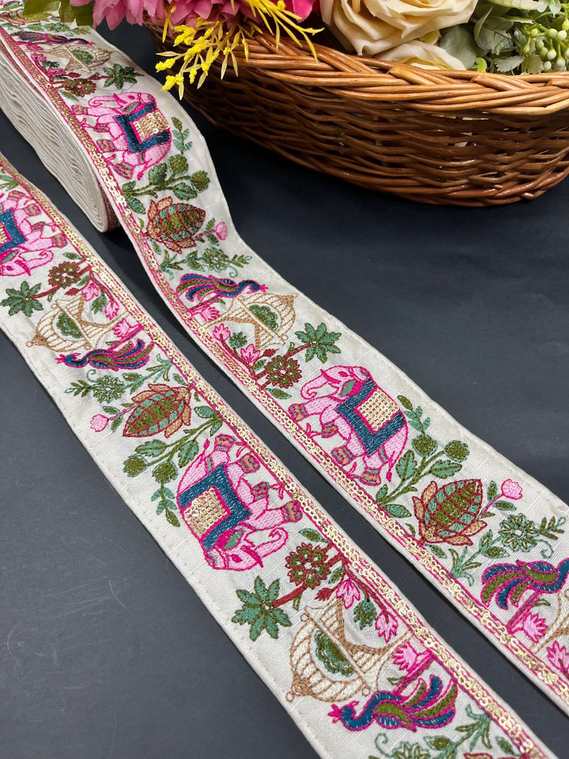Peacock & Elephant Face Embroidery Saree Lace for Boutique, Sarees, Duppatas – 9 Meter | White