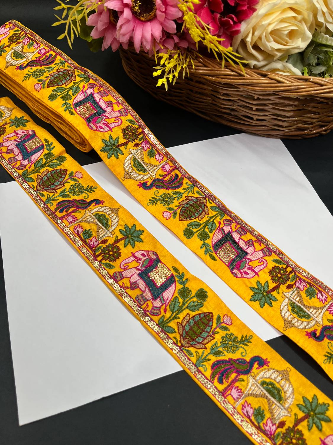 Peacock & Elephant Face Embroidery Saree Lace for Boutique, Sarees, Duppatas – 9 Meter | Yellow