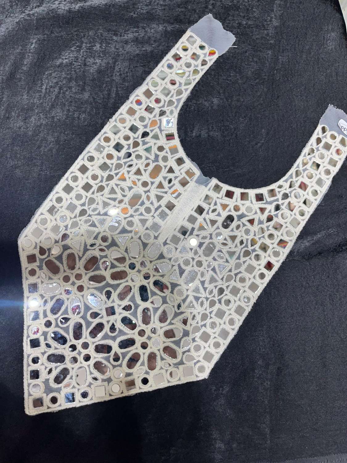 Real Mirror Work Neck Patch for Navratri Kurtis, Dresses & Tops – Handcrafted Design | White