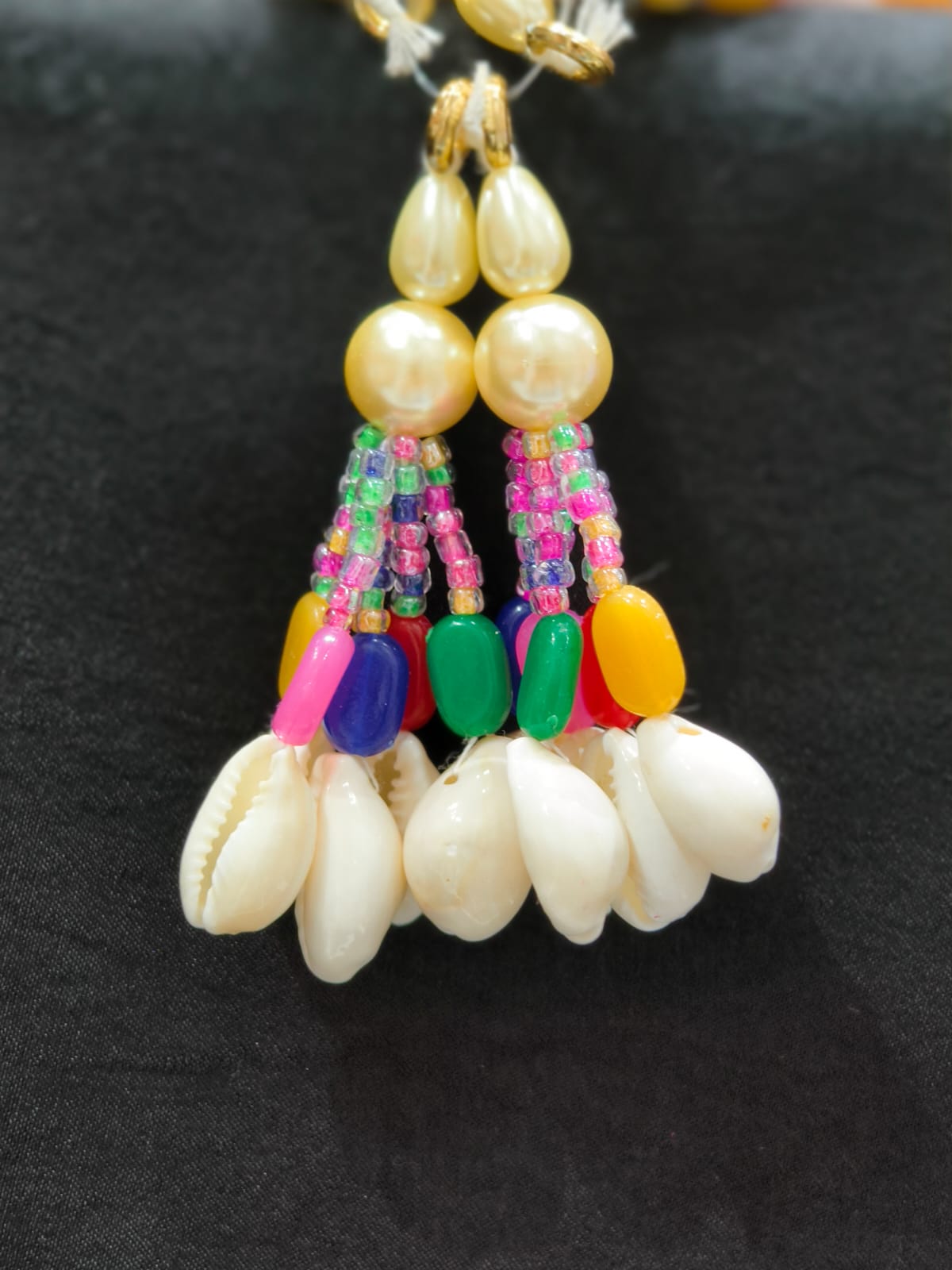 - Elegant handcrafted tassels featuring soft resham threads paired with sparkling mirror embellishments