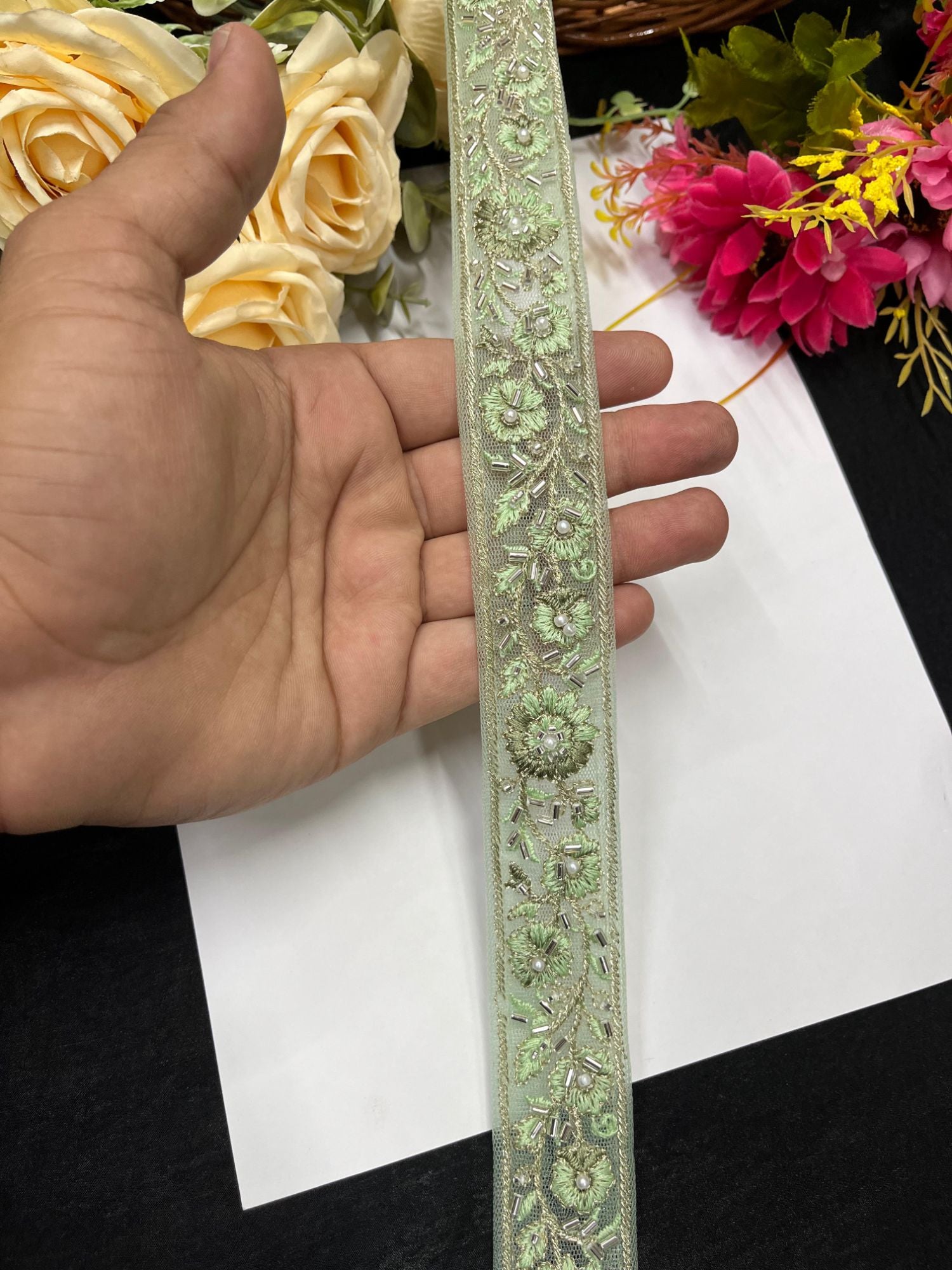 - Width: 1 inch – Sleek and elegant lace featuring Resham thread embroidery and Katdana embellishments.