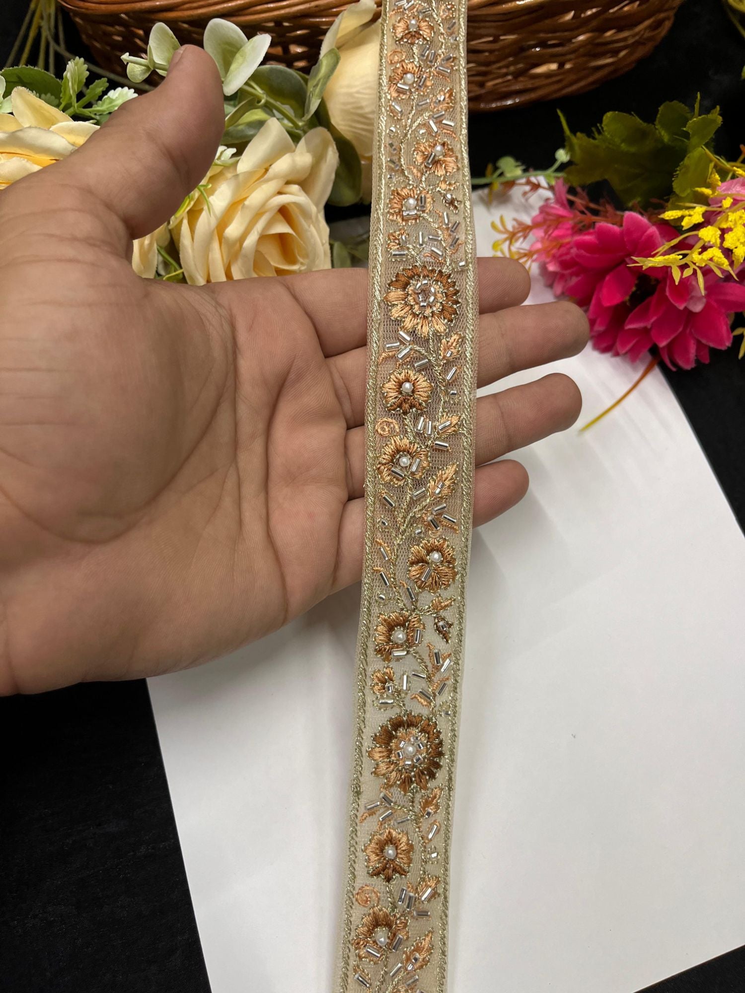 - Width: 1 inch – Sleek and elegant lace featuring Resham thread embroidery and Katdana embellishments.