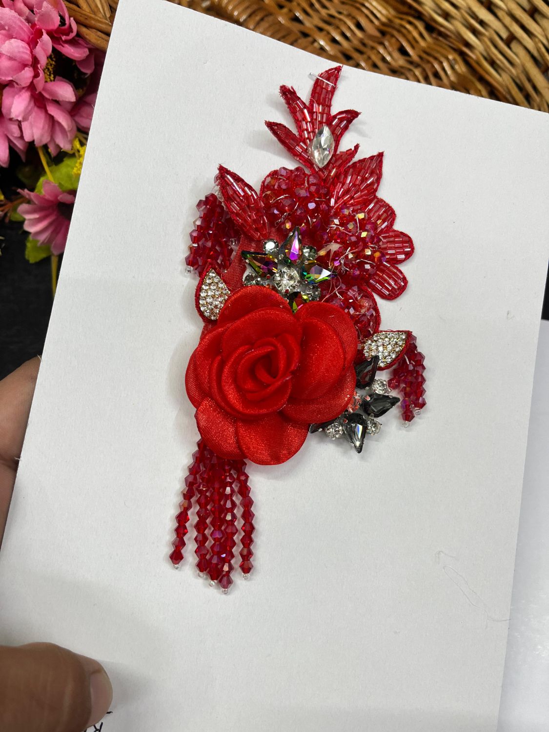 Rhinestone Imported Patch – Western Flower Designer Patch for Sarees, Blouses & Ethnic Outfits (17 cm x 8 cm) | Red