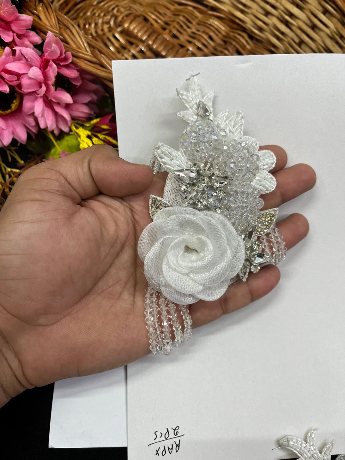 Rhinestone Imported Patch – Western Flower Designer Patch for Sarees, Blouses & Ethnic Outfits (17 cm x 8 cm) | White