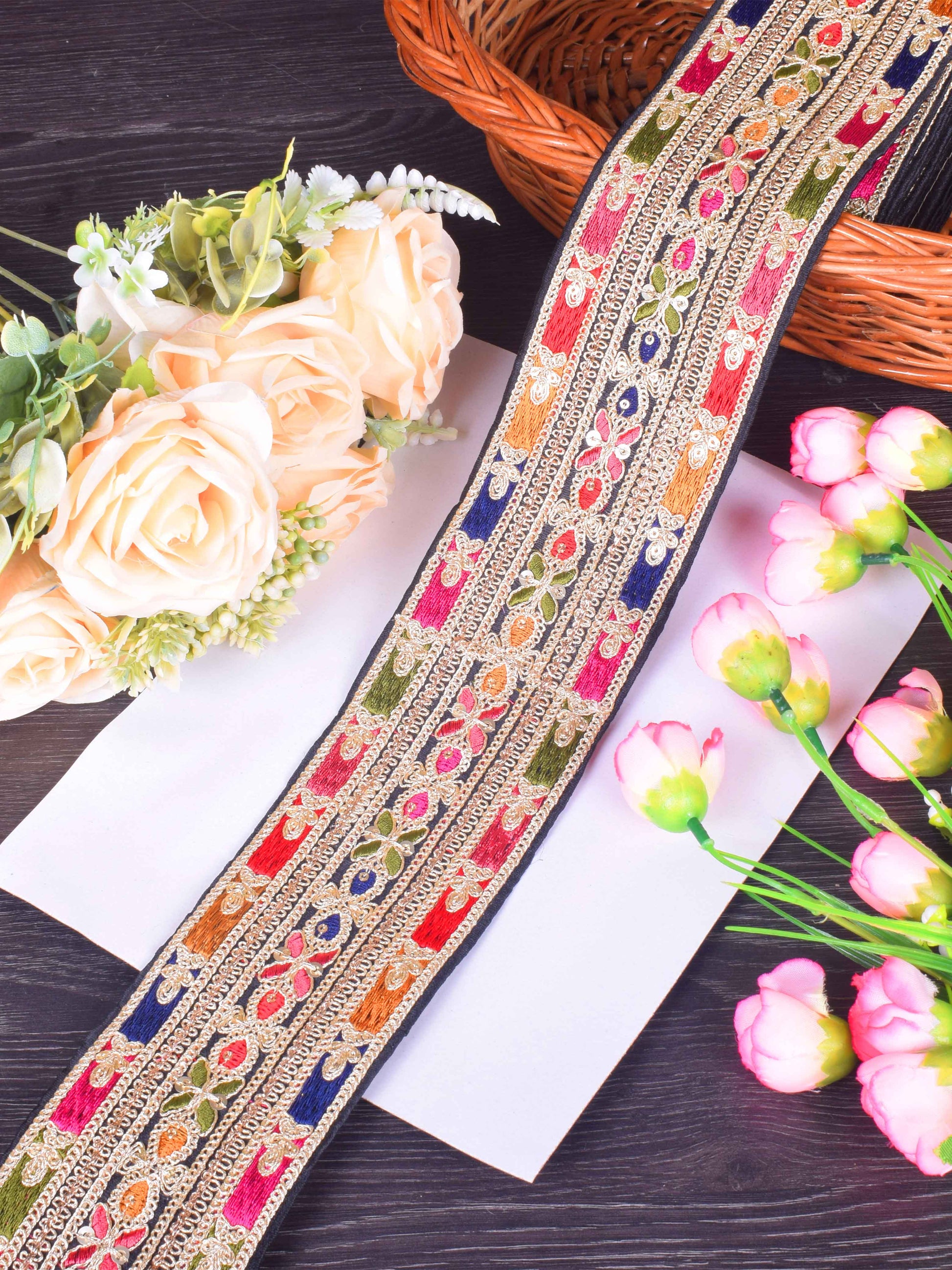 - The delicate embroidery combines bold, contrasting colors that make it perfect for adding a dynamic touch to bridal wear, festive attire, or home decor projects.