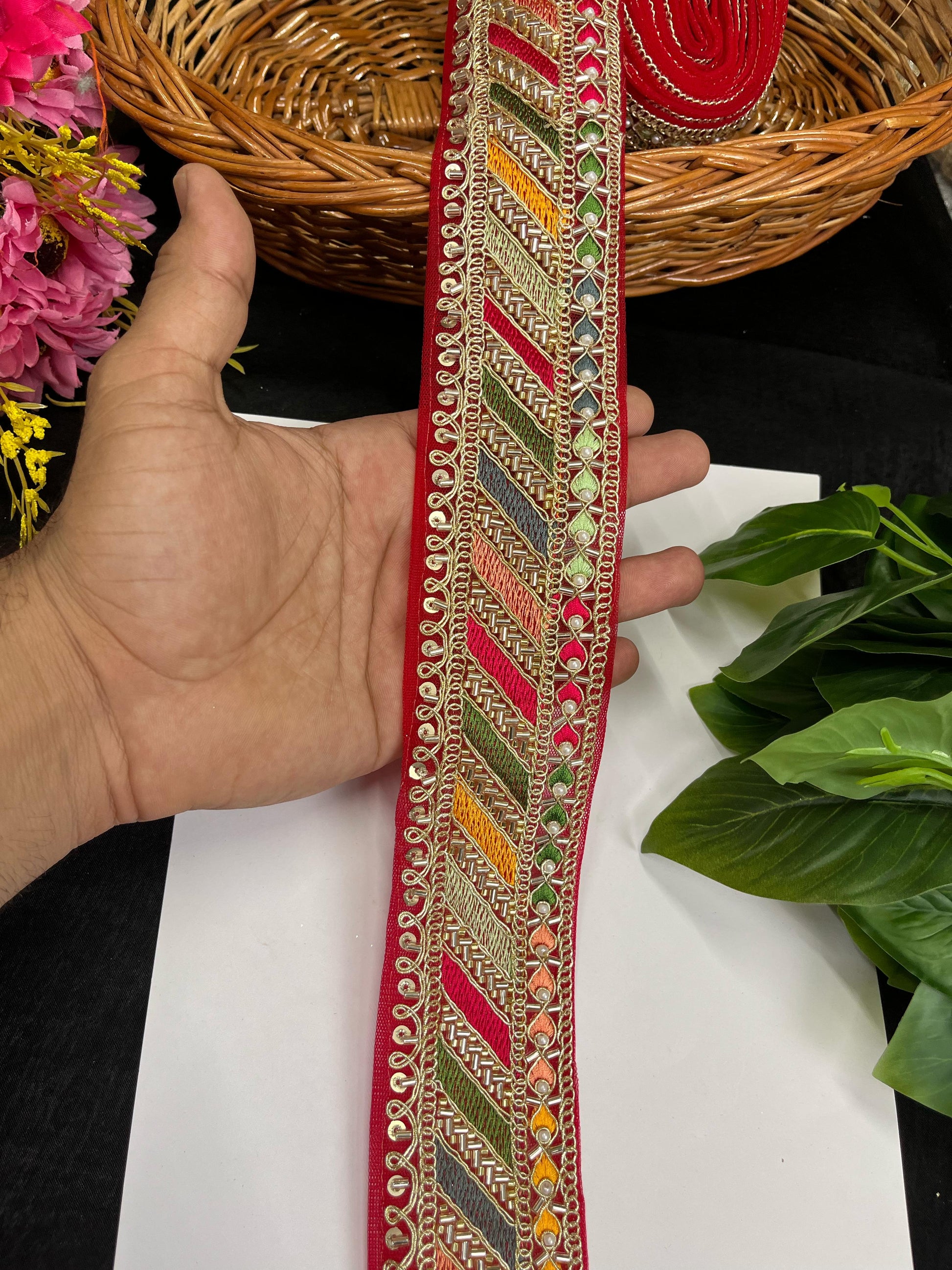 Sabyasachi Inspired Bead & Katdana Embellishment Saree Lace – 9 Meters, 2.25-Inch Designer Border for Lehengas & Dupattas - Red
