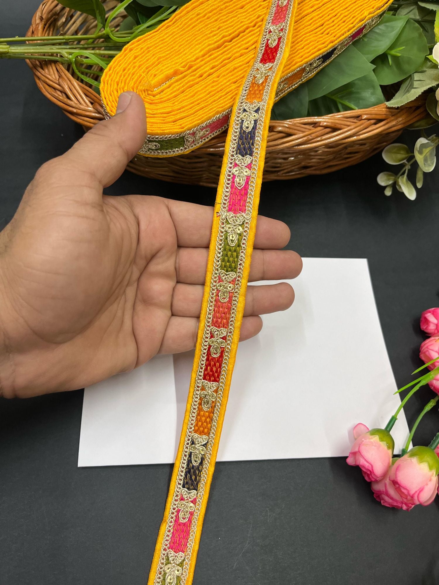 Sabyasachi Inspired Dupatta Lace – 9 Meters, 1-Inch Designer Embroidered Border for Sarees, Lehengas & Ethnic Wear | Yellow