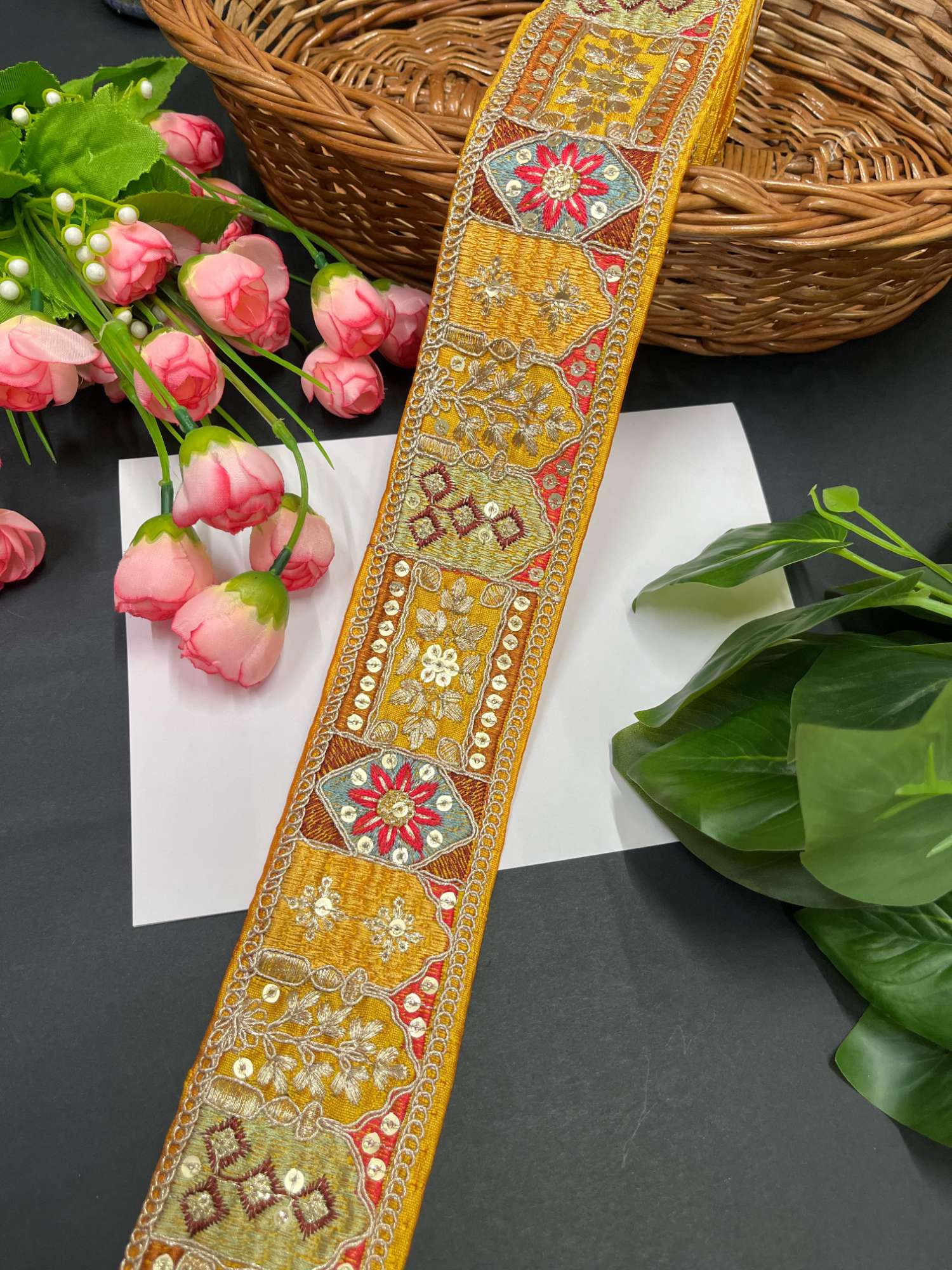 Sabyasachi Inspired Embroidered Sari Border with Zari & Sequin – 9 Meters, 2.5-Inch Designer Lace for Sarees & Lehengas | Yellow