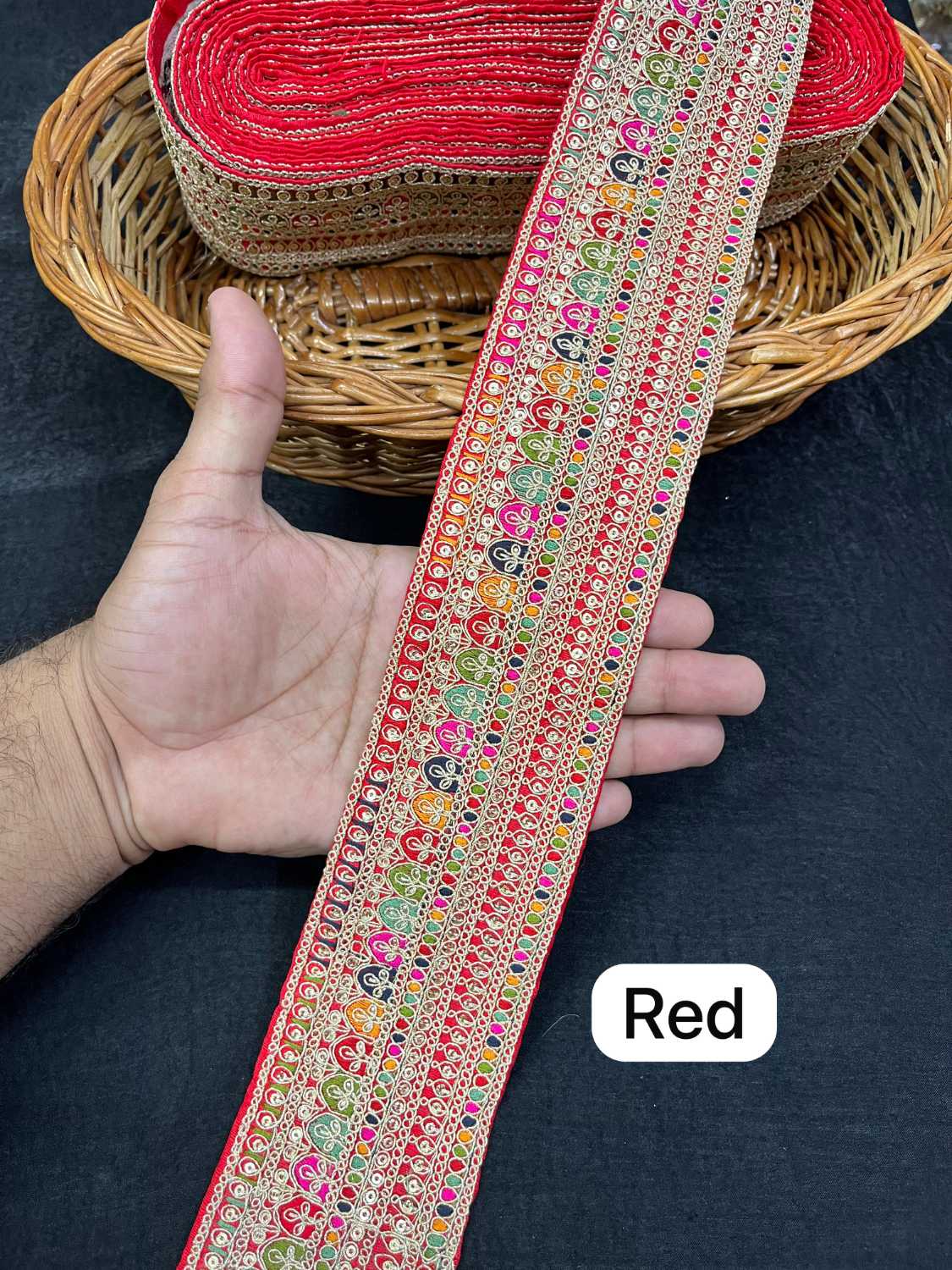 Sabyasachi Inspired Embroidery Designer Saree Lace Border (9 Meter) – 3 Inch Wide Premium Trim | Red