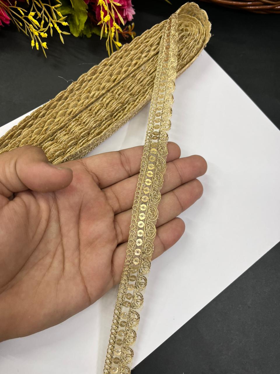 Scalloped Embroidered Zari Lace Border for Sarees – Elegant Gold Lace for Dupattas, Lehengas & Festive Wear (9 Meter, 1 Inch Width) | Gold