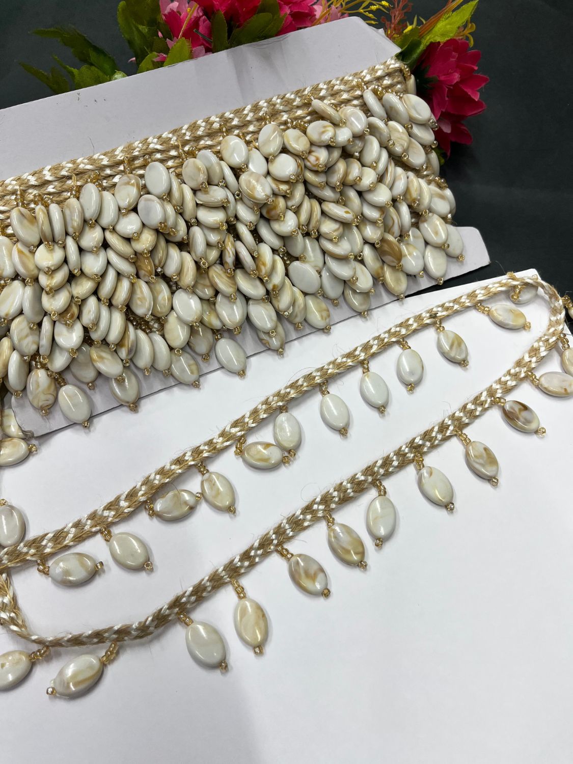 Sea Shell Western Lace – Decorative Latkan Lace for Sarees, Dupattas, and Dresses (9 mtr, 1.5 inch) | Design 3