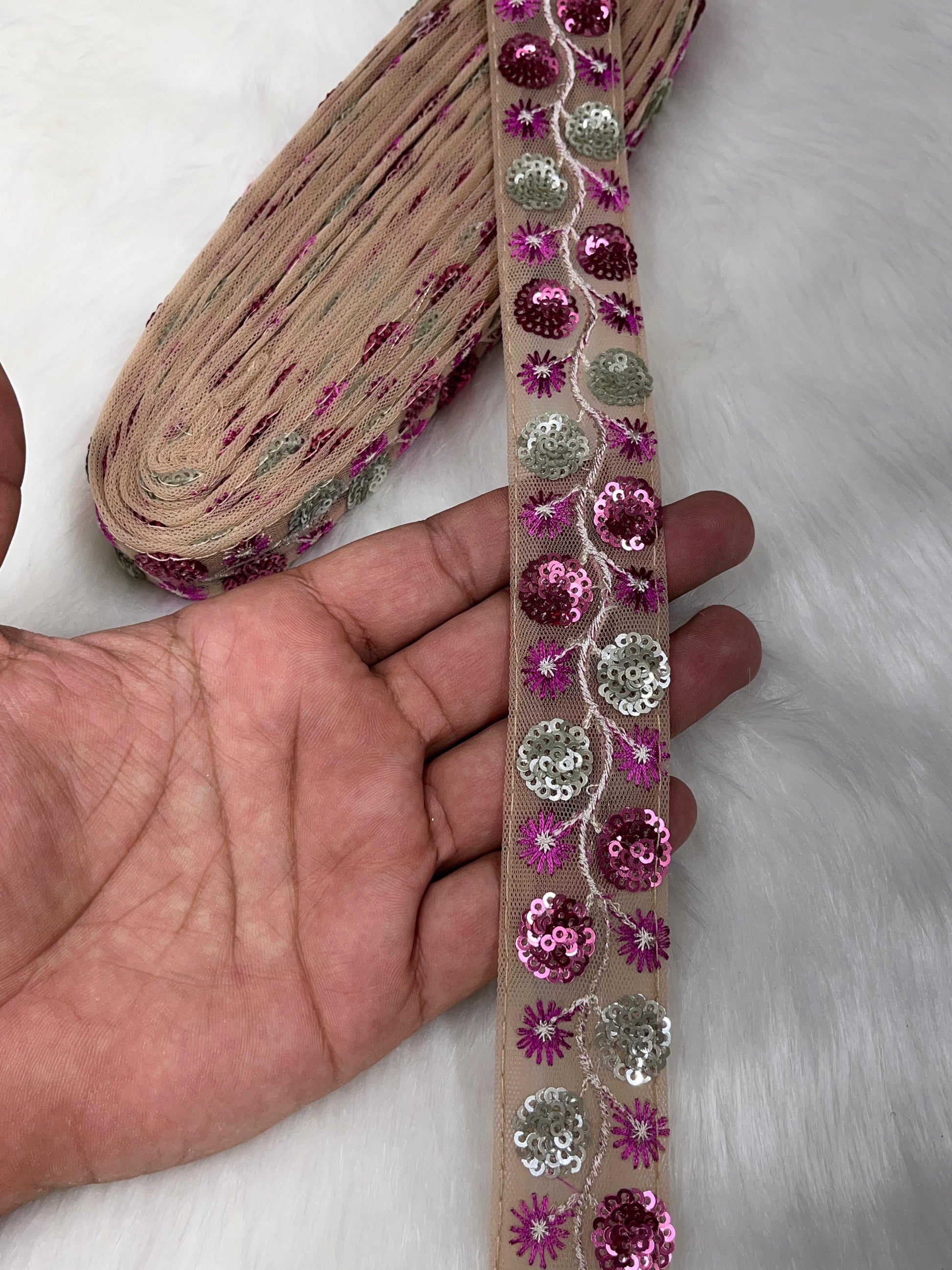 Sequence Work Embroidered Lace Border for Sarees, Dupattas, Skirts, and Lehenga - 9 Meter | Majanta