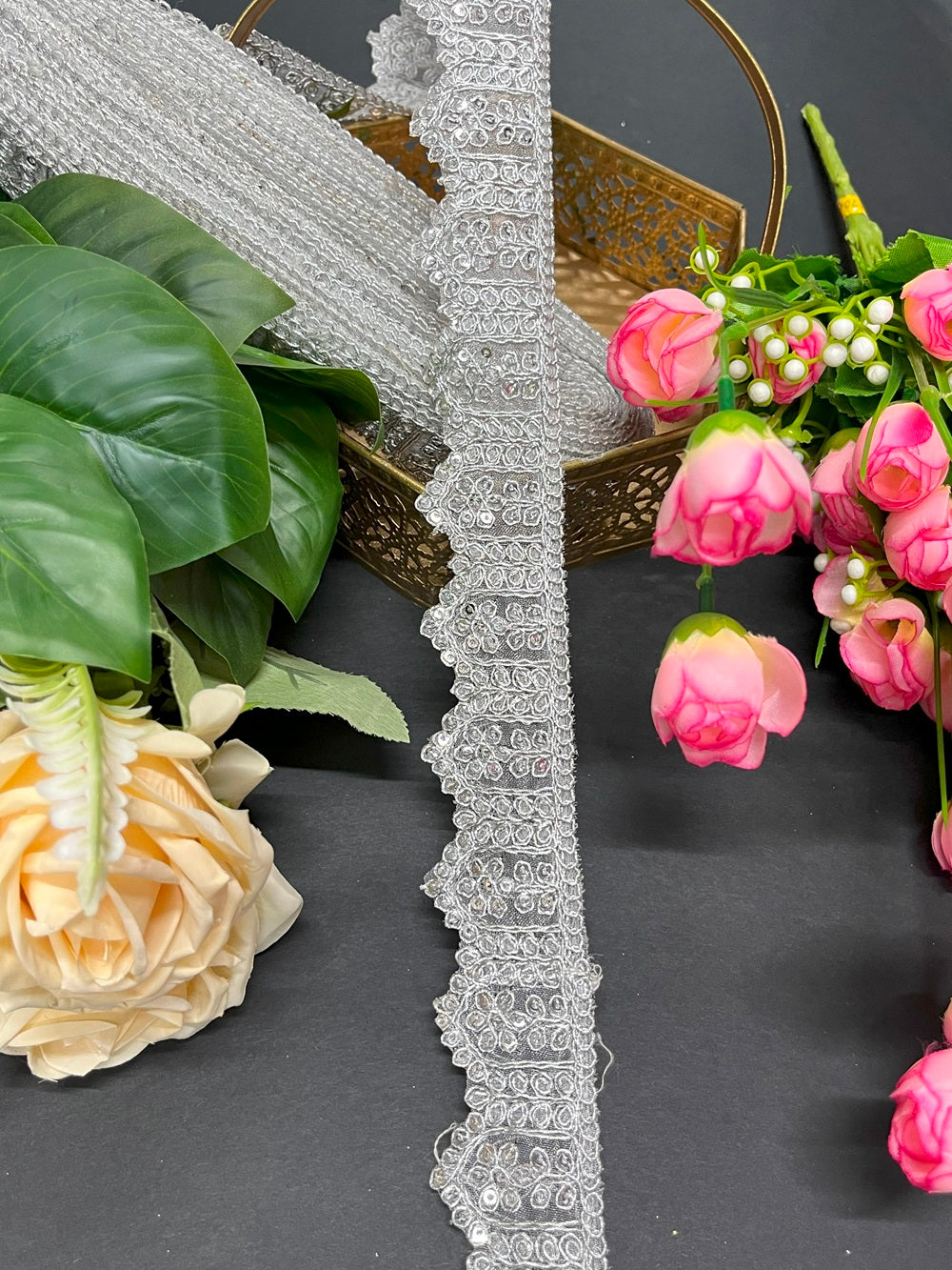 Silver Sequence Scalloped Lace Reel – 9 Meter, 1.5 Inch Width – Decorative Craft & Embellishment