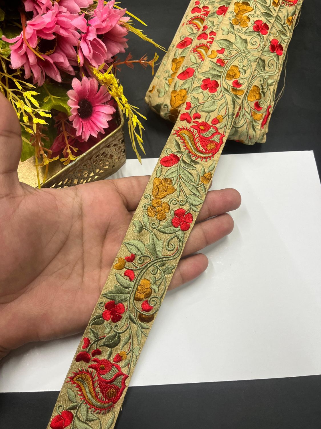 Thread Embroidered Colourful Parsi Lace & Borders – Decorative Lace for Sarees, Dupattas, and Dresses (9 mtr, 2 inch) | Beige Multi 10