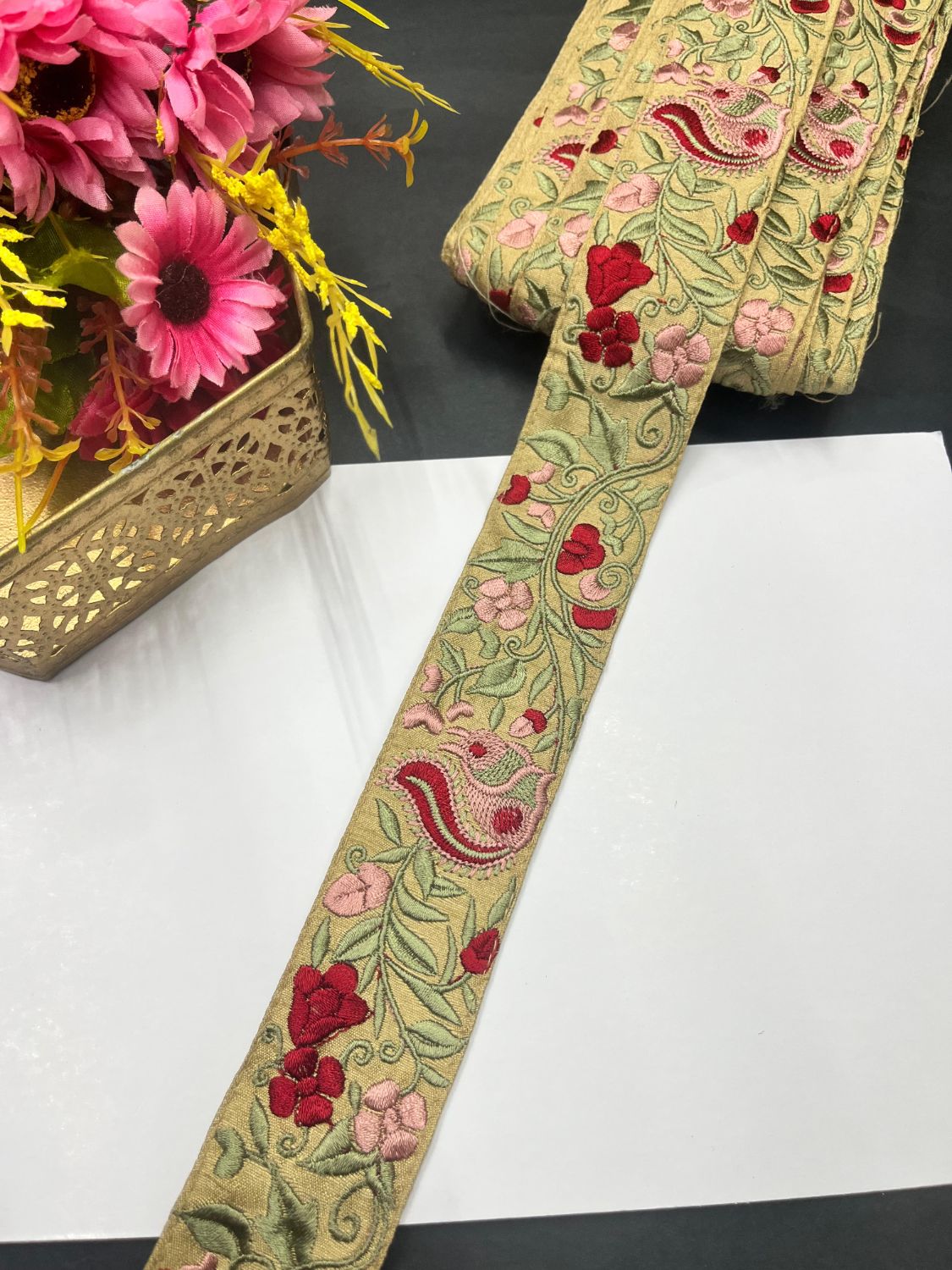 Thread Embroidered Colourful Parsi Lace & Borders – Decorative Lace for Sarees, Dupattas, and Dresses (9 mtr, 2 inch) | Beige Multi 7