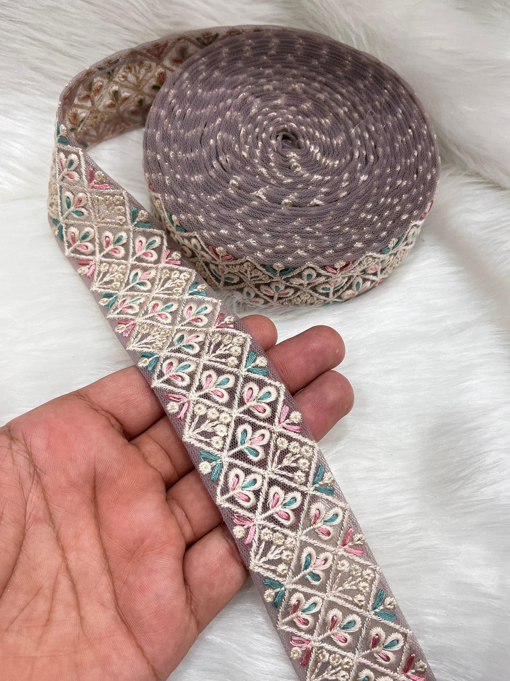Threads Lace Trim for Saree and Dupatta - 9 Meter Embroidered Saree Lace Trim | Purple