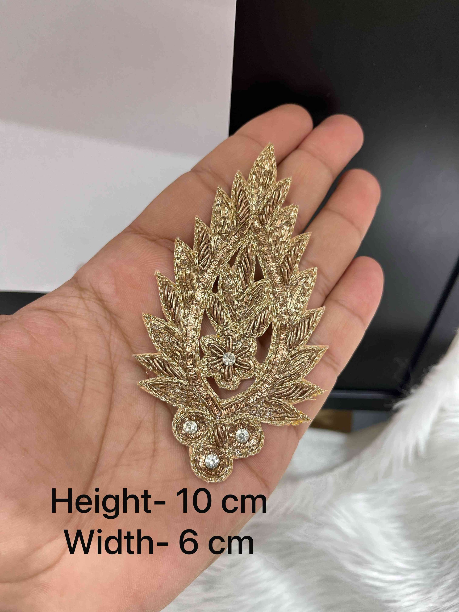 Zardosi Cutwork Embroidered Patch for Blouses, Lehengas, DIY Crafting & Festive Wear (Gold)