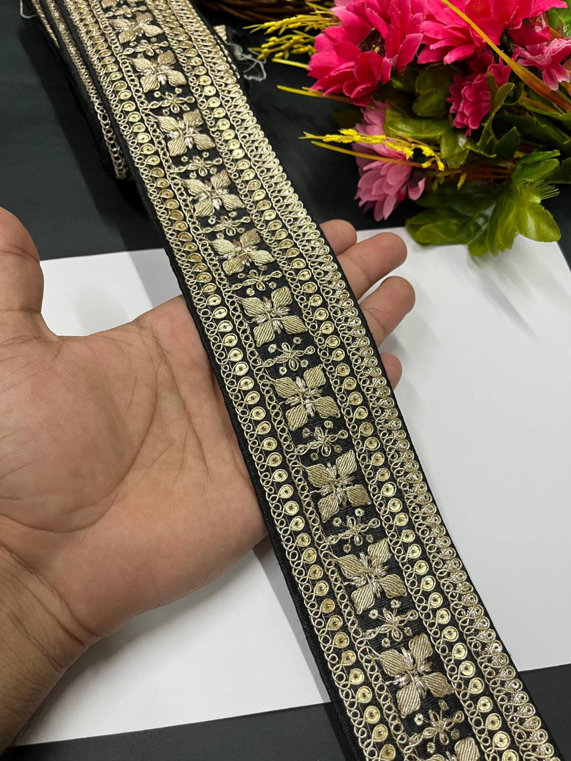 Zari Embroidered Saree Lace Border Trim for Dupatta & Dresses – Fancy Embellished Lace (9 Meter) | Black